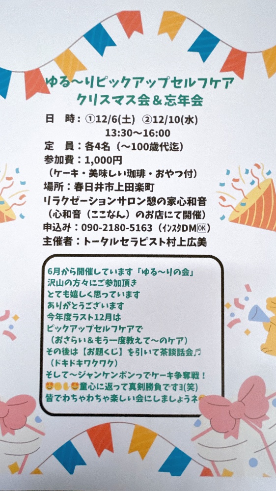 | 体&心 | 🌸ほぐし専門/体&心のコリをほぐし整え元気にな〜る ※マッサージ (全身てもみ・足つぼ) ※カラー・カードセラピー ※メンタルアドバイス ※傾聴 |