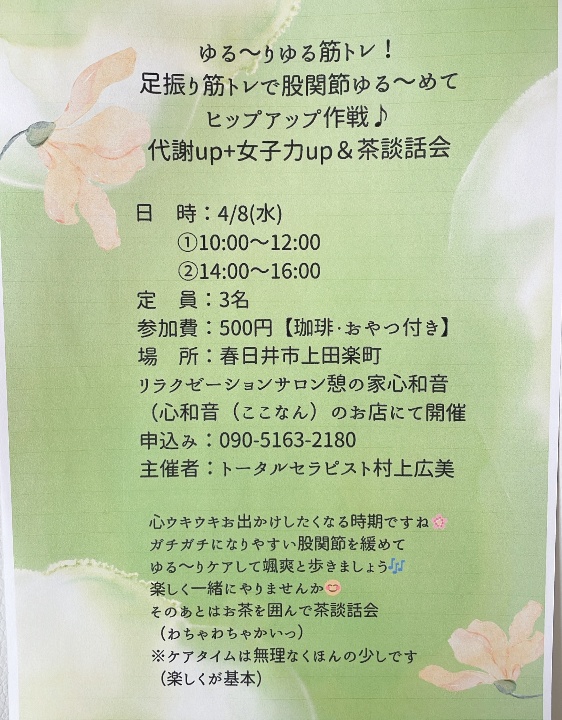 | 体&心 | 🌸ほぐし専門/体&心のコリをほぐし整え元気にな〜る ※癒しのほぐし (全身てもみ・足つぼ) ※カラー・カードセラピー ※メンタルアドバイス ※傾聴 |